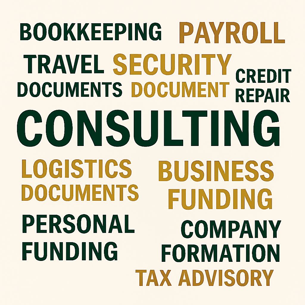 Achieve your business objectives with our expert consulting services. We provide tailored solutions and strategic guidance across a range of critical areas, including Credit Repair, Comprehensive Bookkeeping, Logistics Compliance, and Essential Travel Documentation. Our dedicated team is ready to provide the insights and practical solutions you need to succeed. Fill out the form below to initiate your professional consultation and take the first step toward realizing your goals.